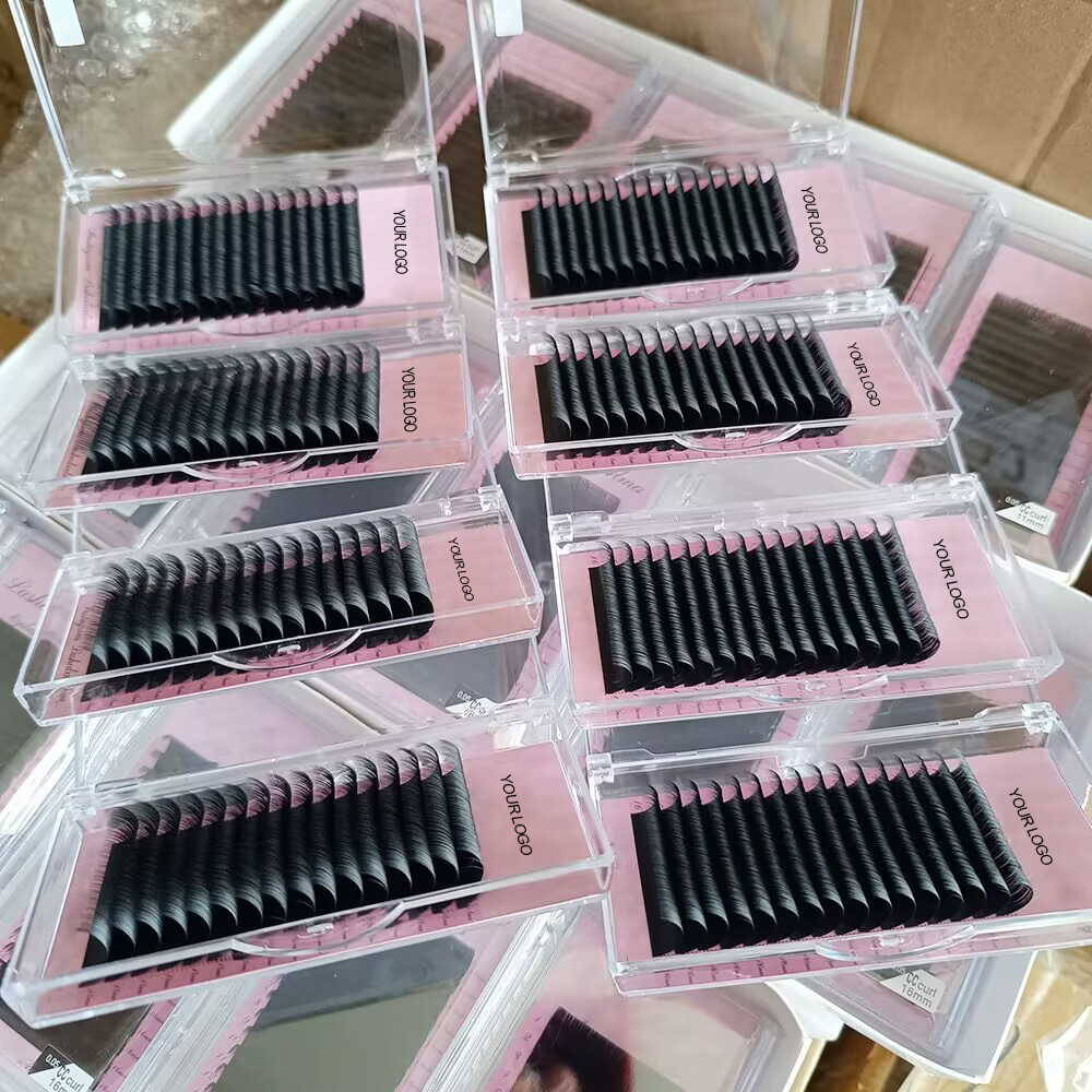 Vente en Gros Extensions de Cils de Haute Qualité 0.03 0.05 Courbure C D B J Souples Velours Cachemire Mat Noir Plateaux d'Extensions de Cils Volume Russe Facile