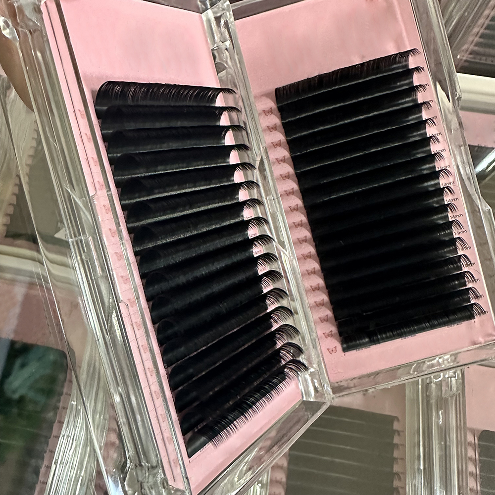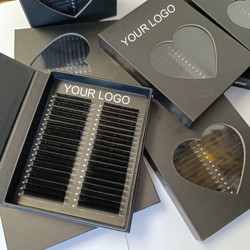Plateaux Personnalisés d'Extensions de Cils Individuelles en Velours et Cachemire, Volume Easy Fan, Soie Synthétique Noir Mat, Fournitures pour Extensions de Cils