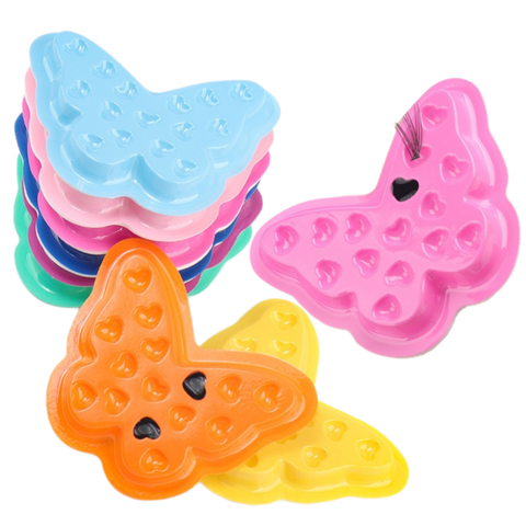 まつげエクステンションツール接着パレットハート蝶形状使い捨てプラスチックまつ毛接着剤ホルダー